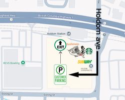 Our parking lot is located right after passing Starbucks, Subway and Holdom Chiropractic from Holdom ave.